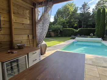 New this year is our fantastic pool house complete with seating for six, bar and stools, gas barbecue, kitchen area, fridge and ice machine, although there is no running water. Perfect for outdoor dining during the day. And at night with the pool and house completely illuminated, it is a stunning area for an evening's entertainment.